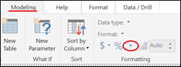 - HavÂing your new meaÂsure selectÂed under Fields on the right, you can click the comÂma under the ModÂelÂing ribÂbon > ForÂmatÂting